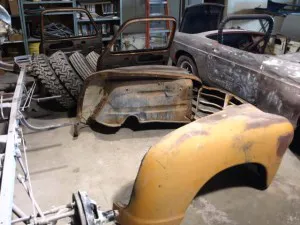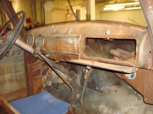 We are repairing the rust on the fenders for the ’49 Chevy 3800. All rust repairs that are done here are done will all new metal.