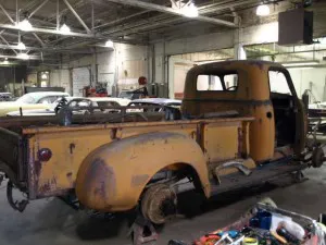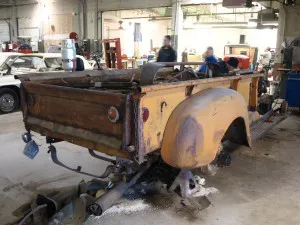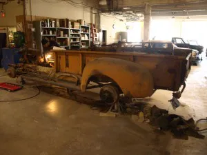 The shop is at full speed on getting this 1949 3800 stripped down and moving towards the body department. For anybody that has not yet heard about this vehicle you will want to pay close attention. We are working with one of our clients to do a full frame of Restoration of this vehicle. We then plan to take it and sell it at the first ever Orange County CA, Barrett-Jackson auction in June. Keep watching this build, it will be great!
