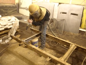 Alex is blasting the frame for the 3800 to get it ready for paint.