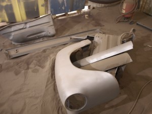 Dan is priming the hood and one of the doors for the Chevy 3800 today. Barrett Jackson, just keeps getting closer!