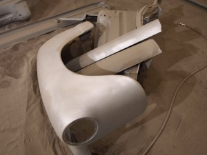 Finishing up some of the body repairs and smoothing out of the firewall.