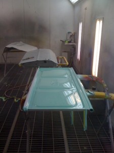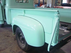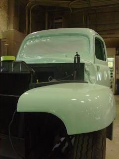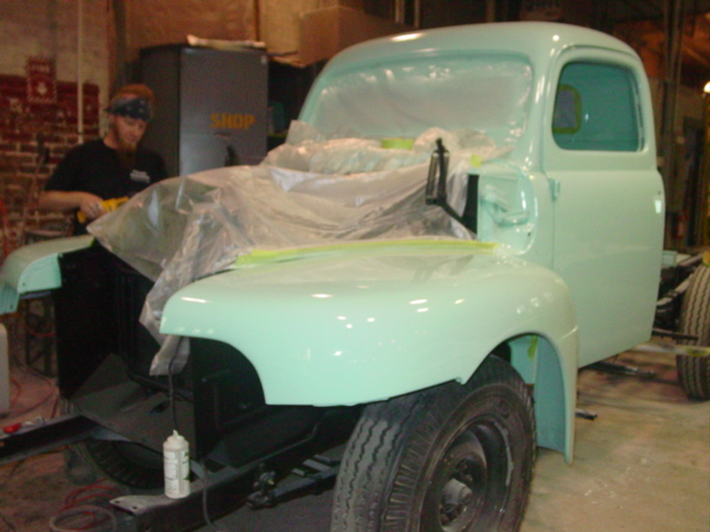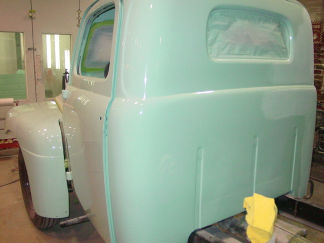 Dan has spent the better part of this week painting the 1950 Ford Pick Up. This color was not stock in the 50’s, maybe it should have been!
