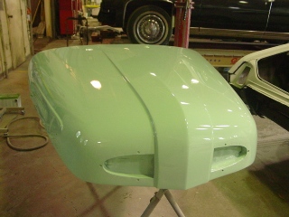 The final pieces including the tailgate have been painted for this car restoration.