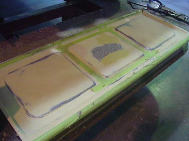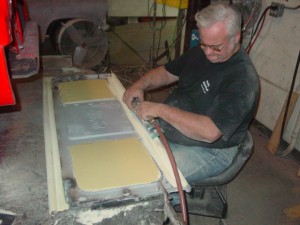 Ralph continues to smooth out the tailgate for the Ford.