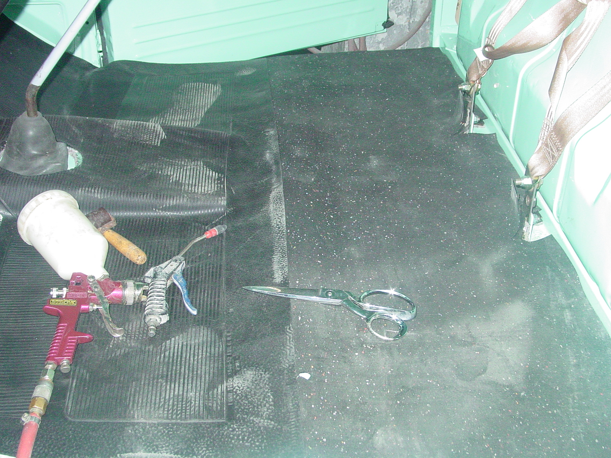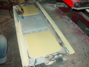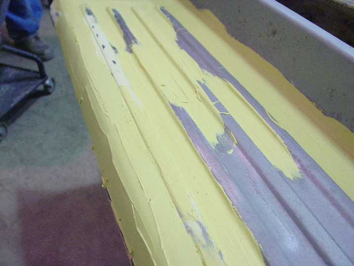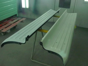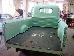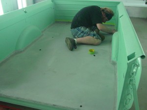 Dan is preparing to paint the floor of the bed, the running boards and the back bumper brace.