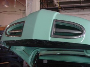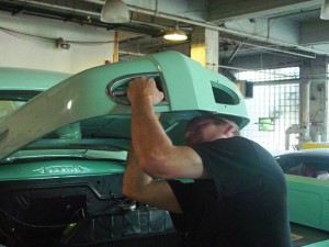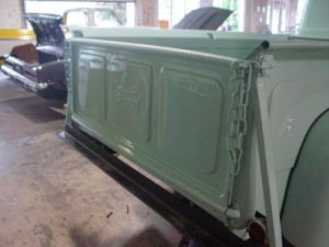 The tailgate is installed for this classic car restoration.