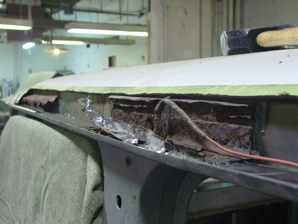 Brett has started to weld in new metal to patch where we found rust holes from blasting.