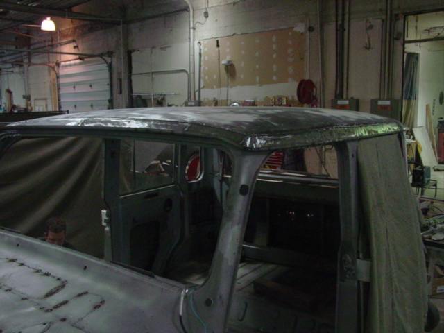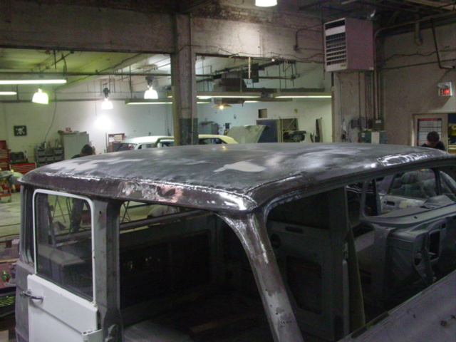 The body work on the roof panel and the rear cab panel are almost completely done for this classic car restoration.