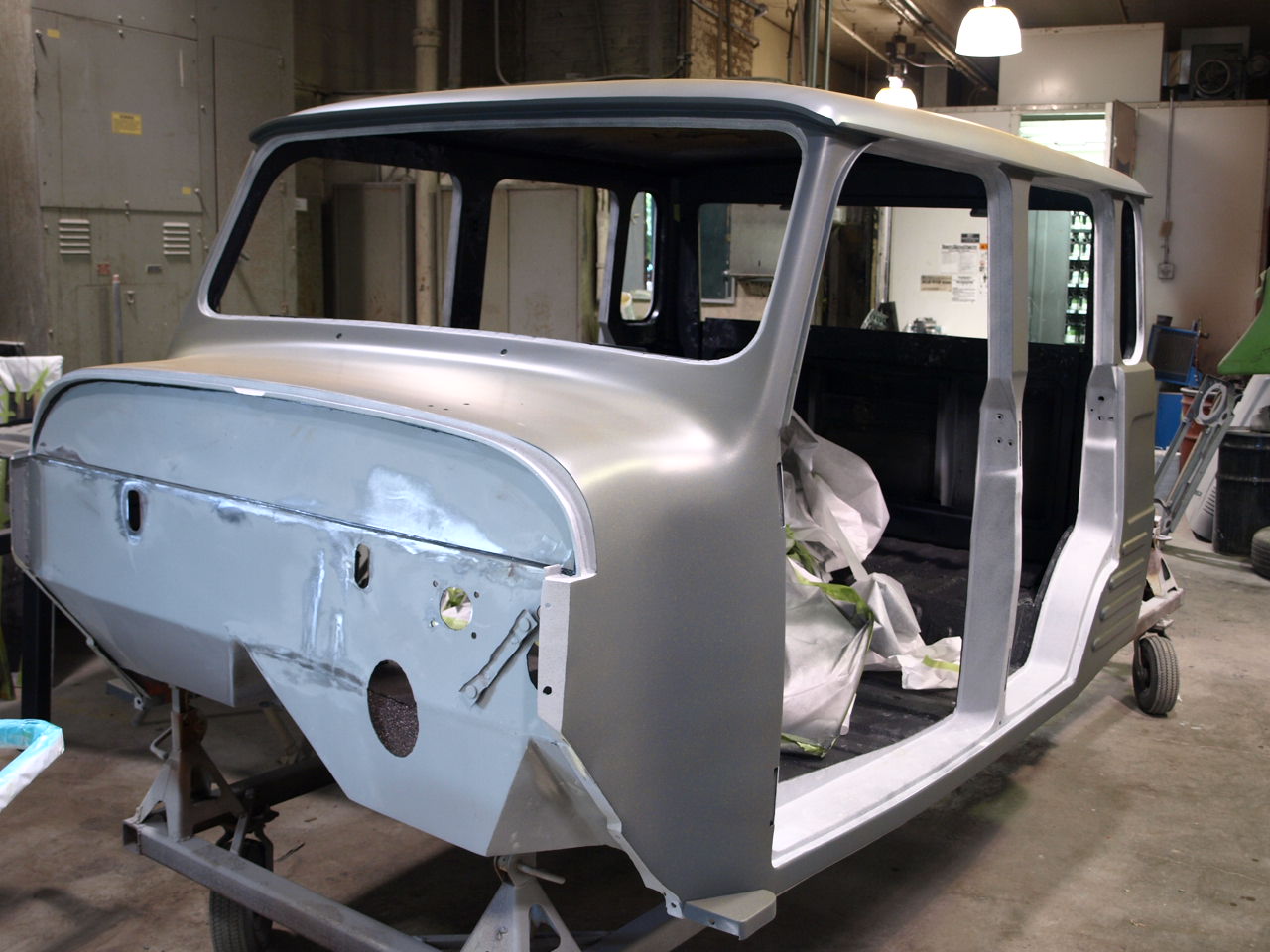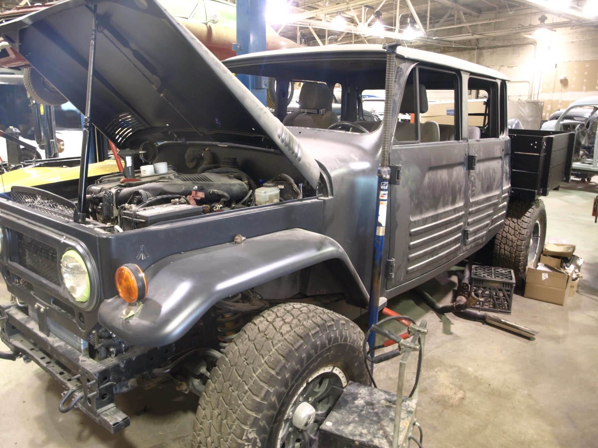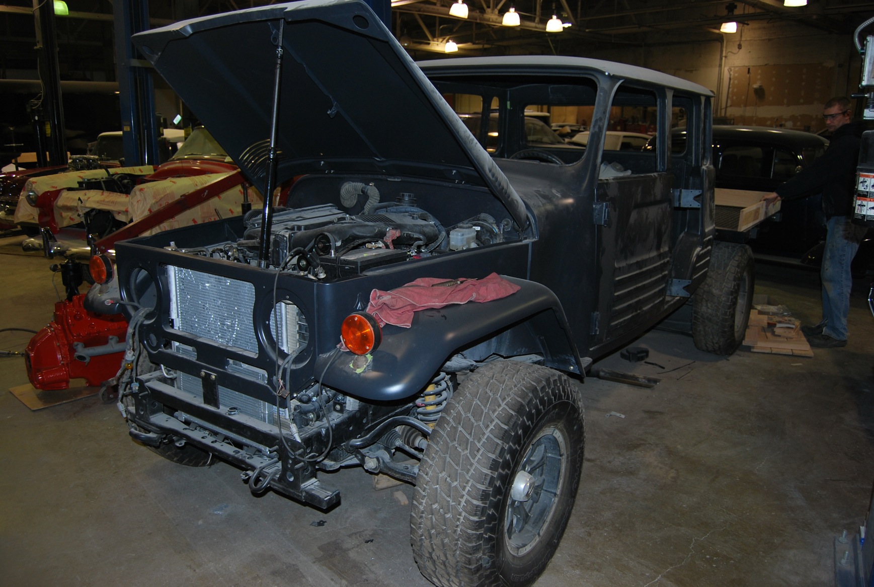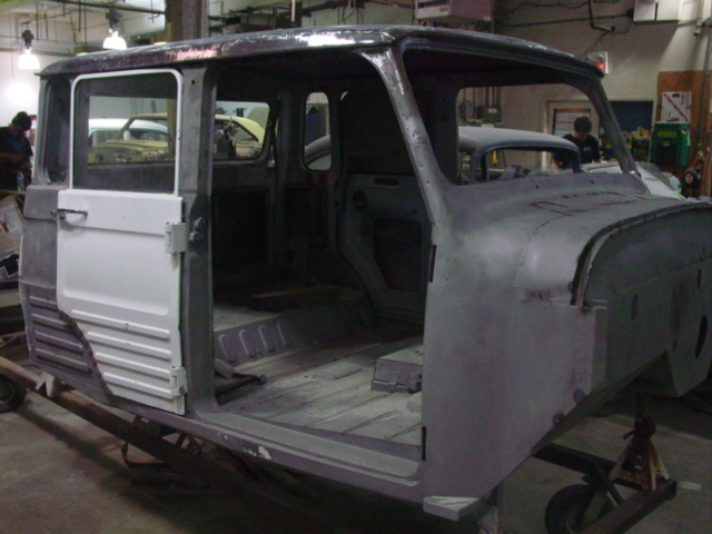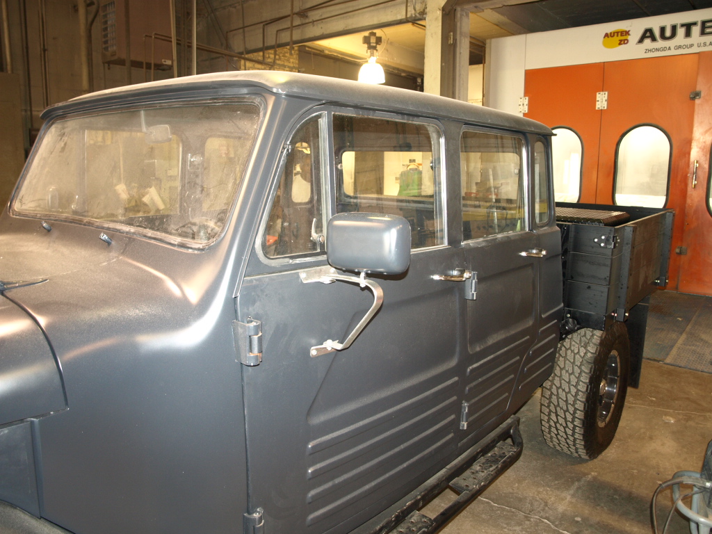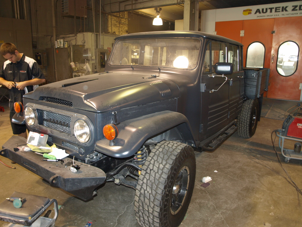 The 1967 Toyota Landcruiser is painted and ready to go over to the assembly and mechanical departments.