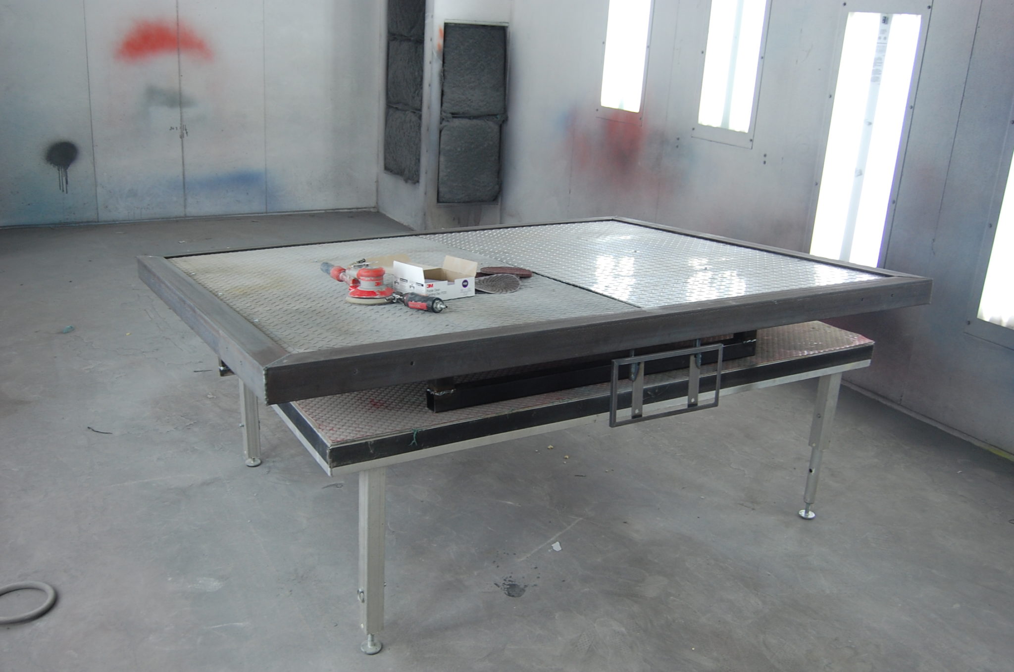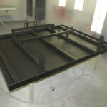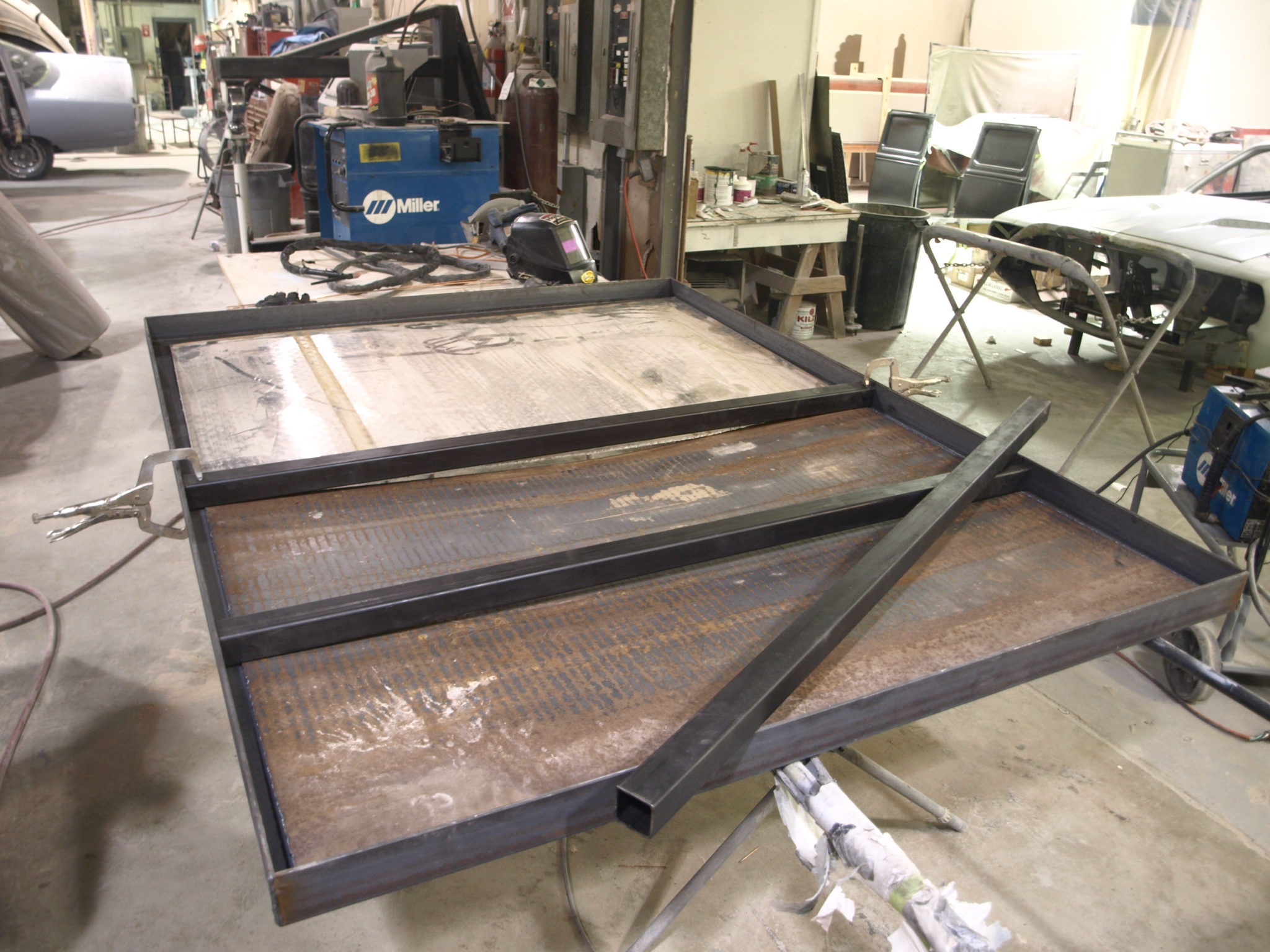 Alex is working on getting the bed sides fabricated for the Toyota and the metal part of the bed is in the paint booth for paint.