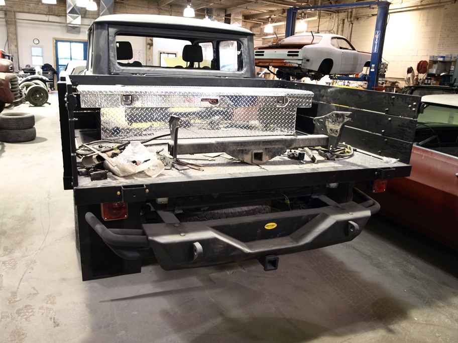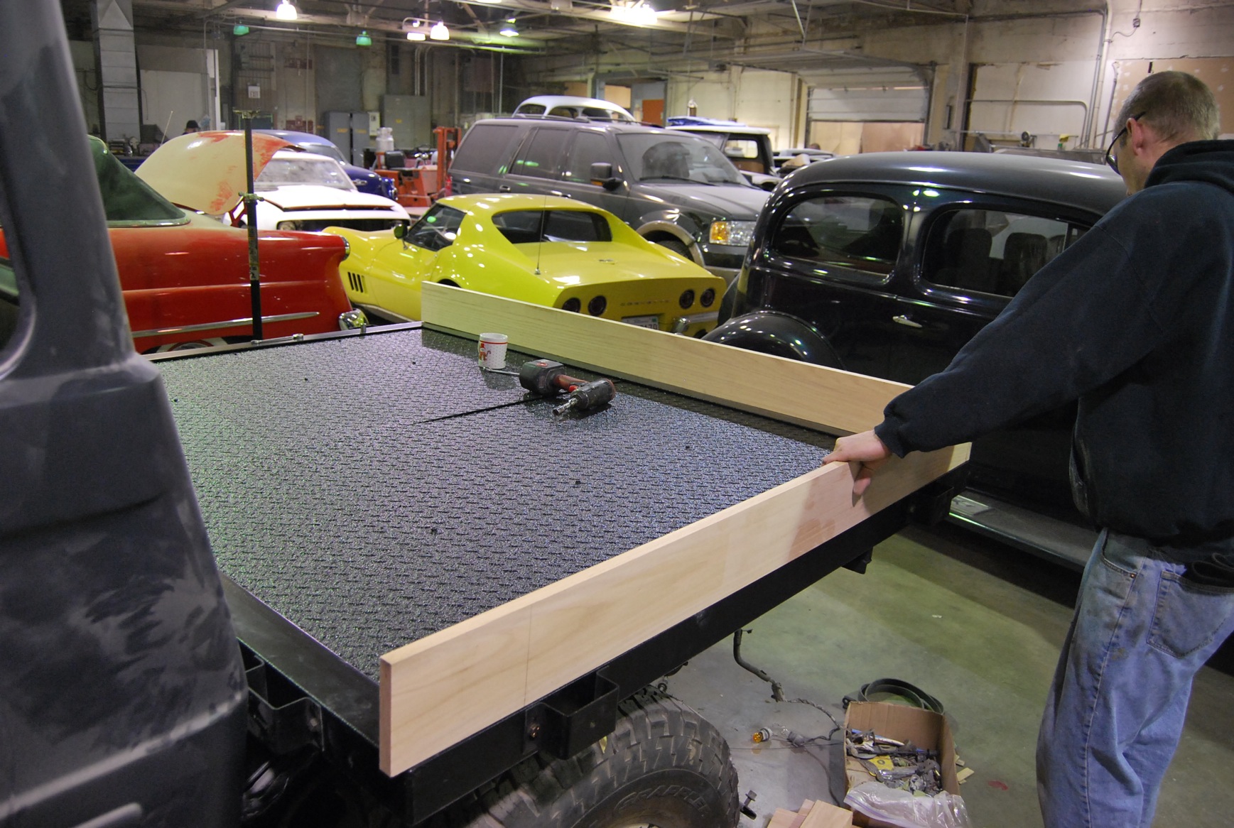 Chris is working on fabricating and installing the new flatbed for the Toyota.