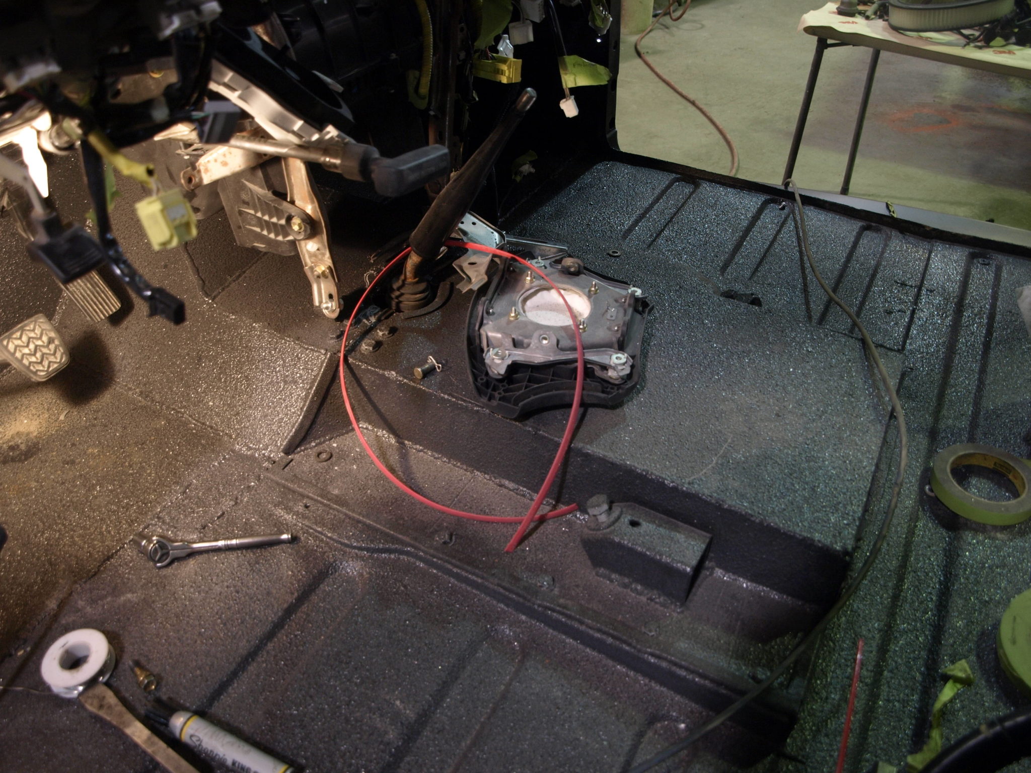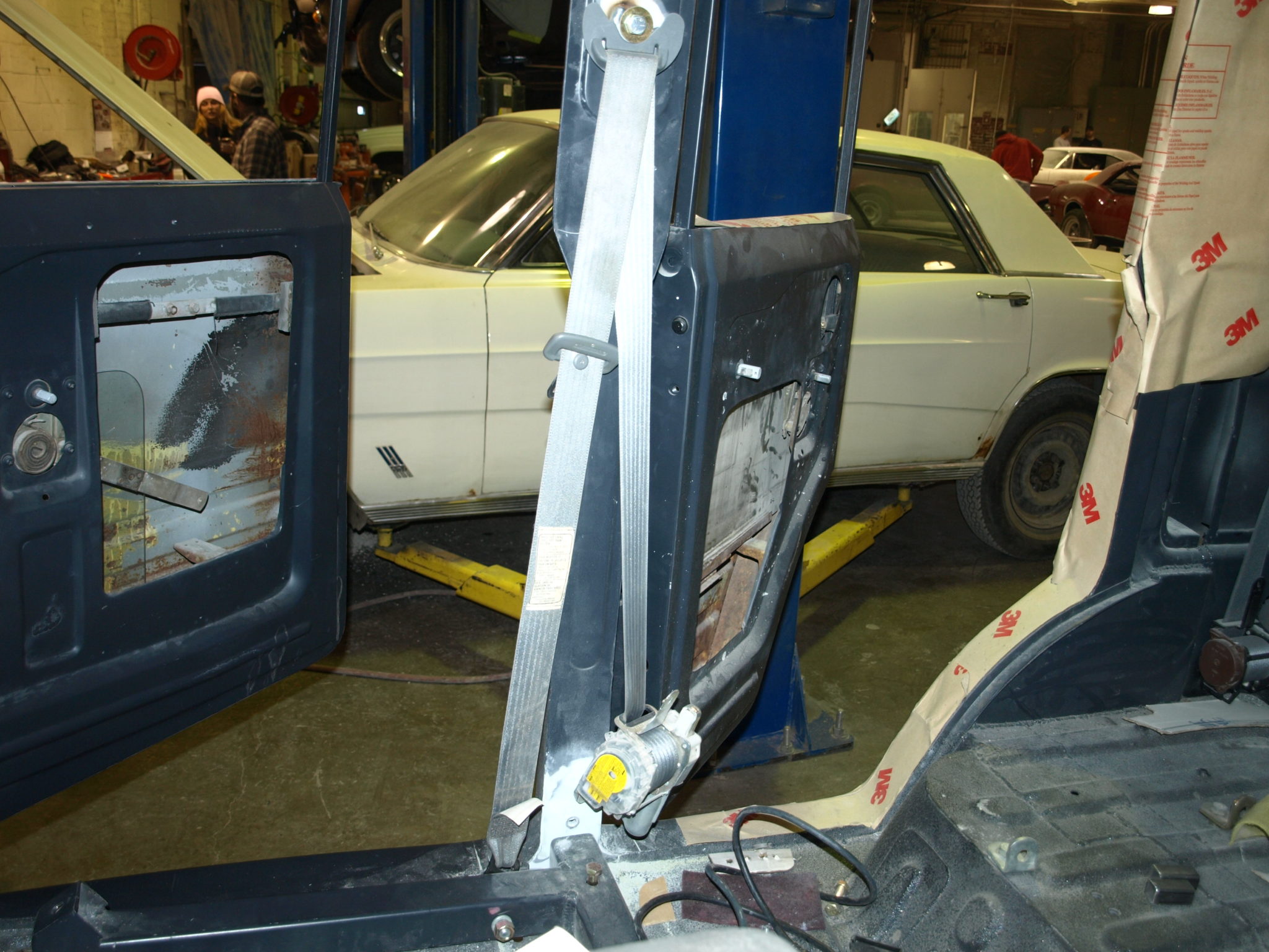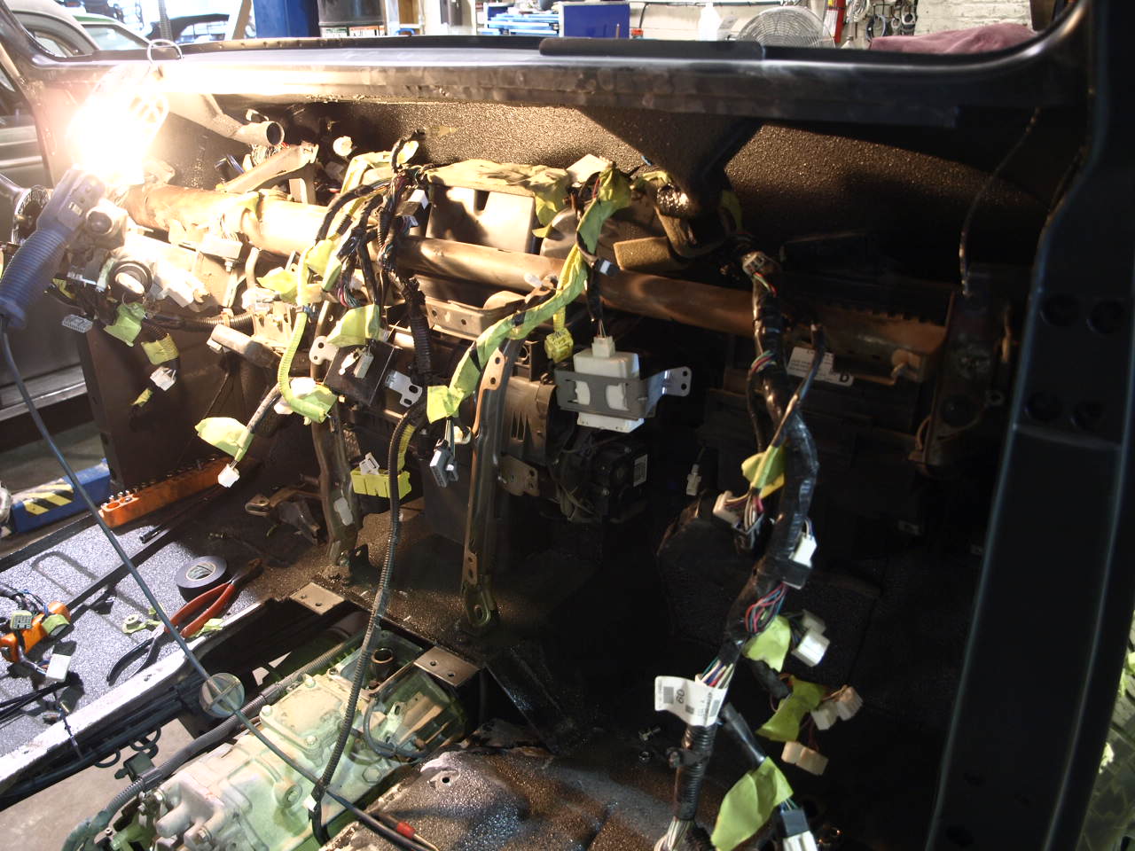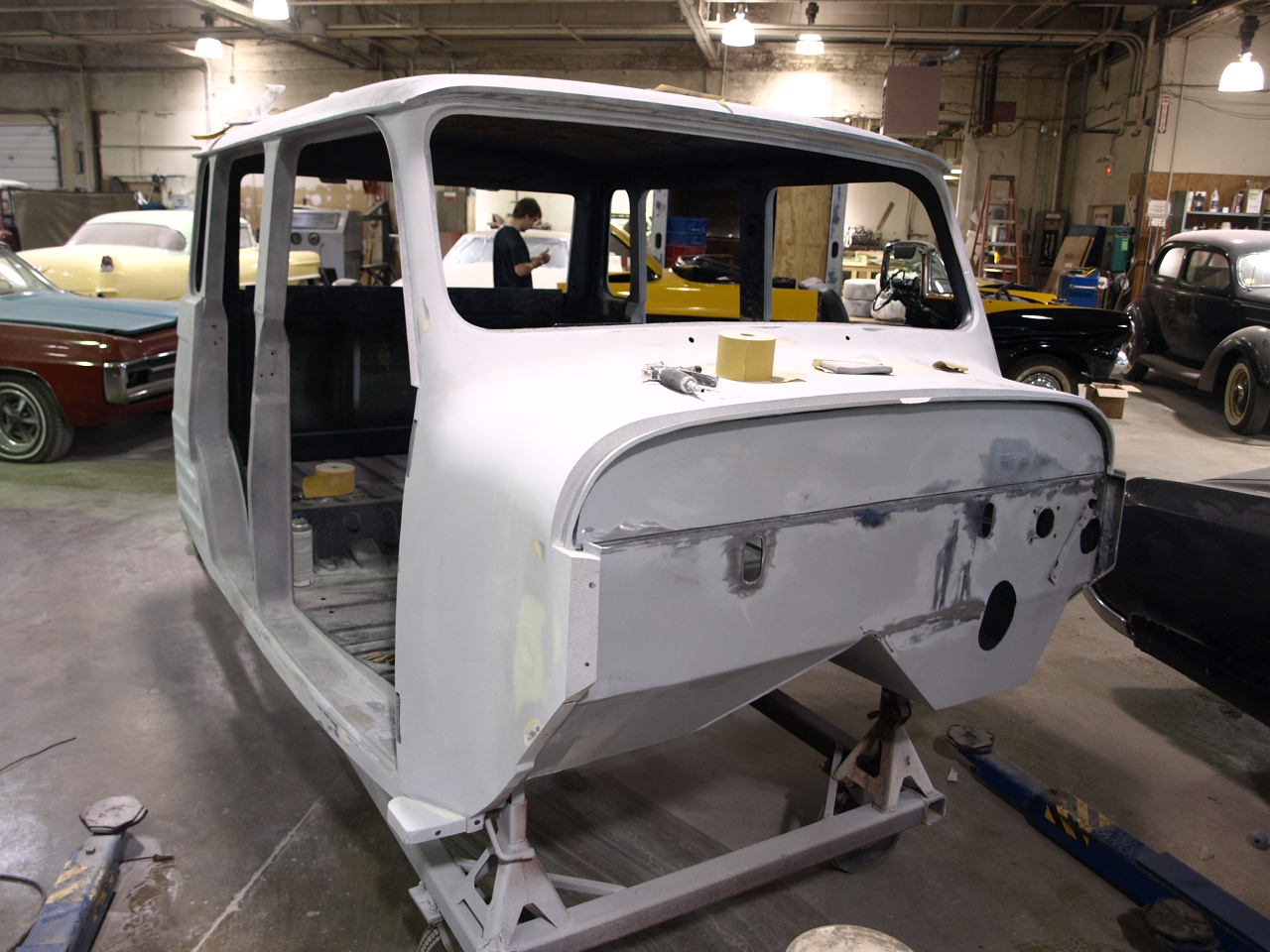 Alex is finishing up with the body work inside the cab for the Toyota so it can go over to Dan for paint.