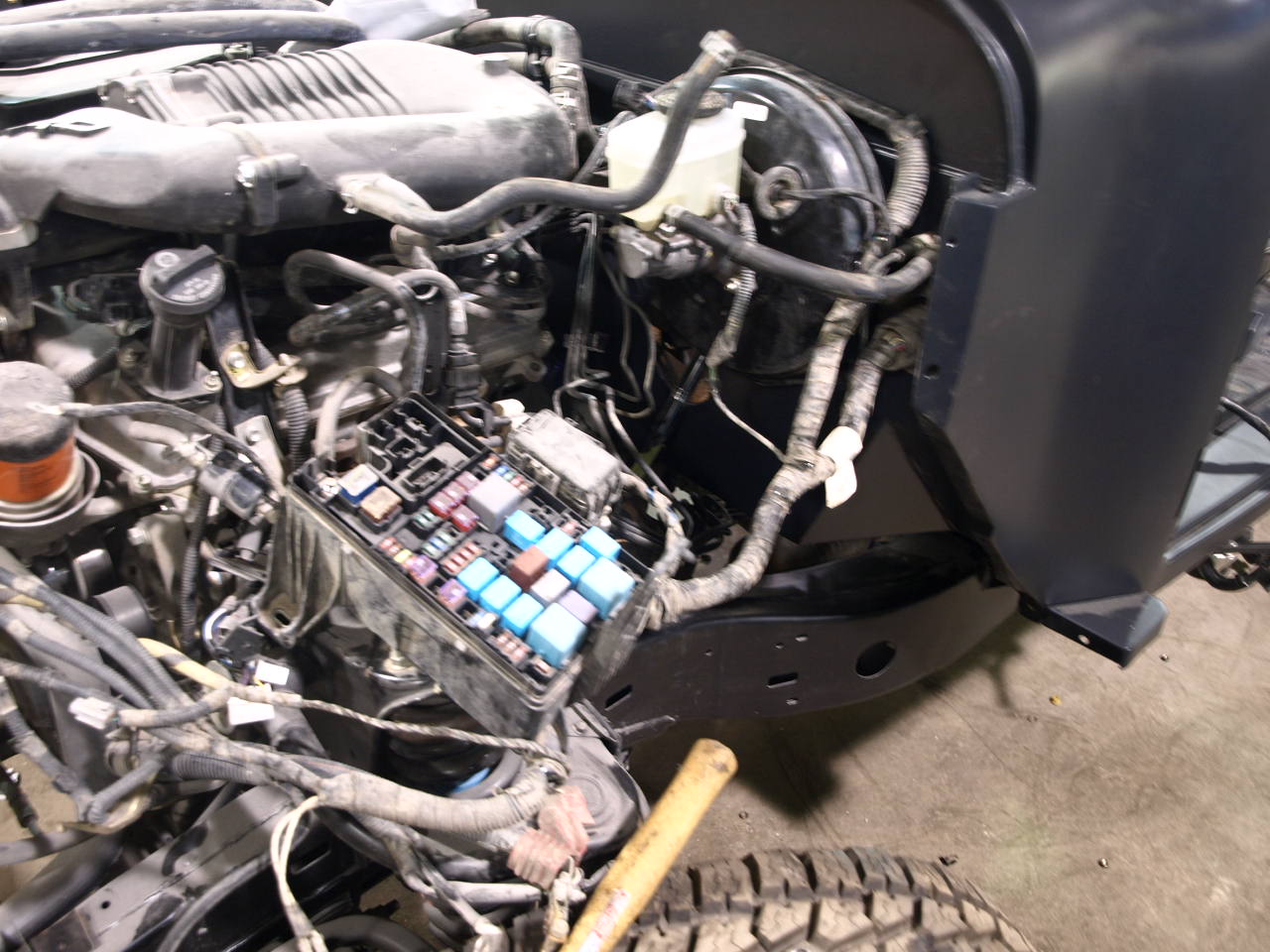 We are still working on the wiring and tranny cover for the Toyota.