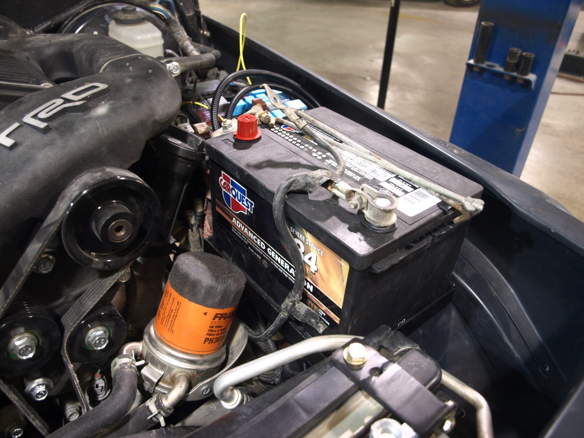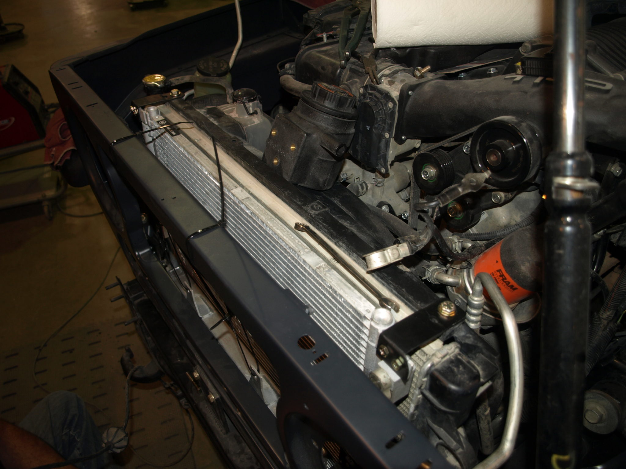 The battery is mounted, intercooler resivor is installed and intercooler piping is being run. We are also working on wiring and installing the front lights.