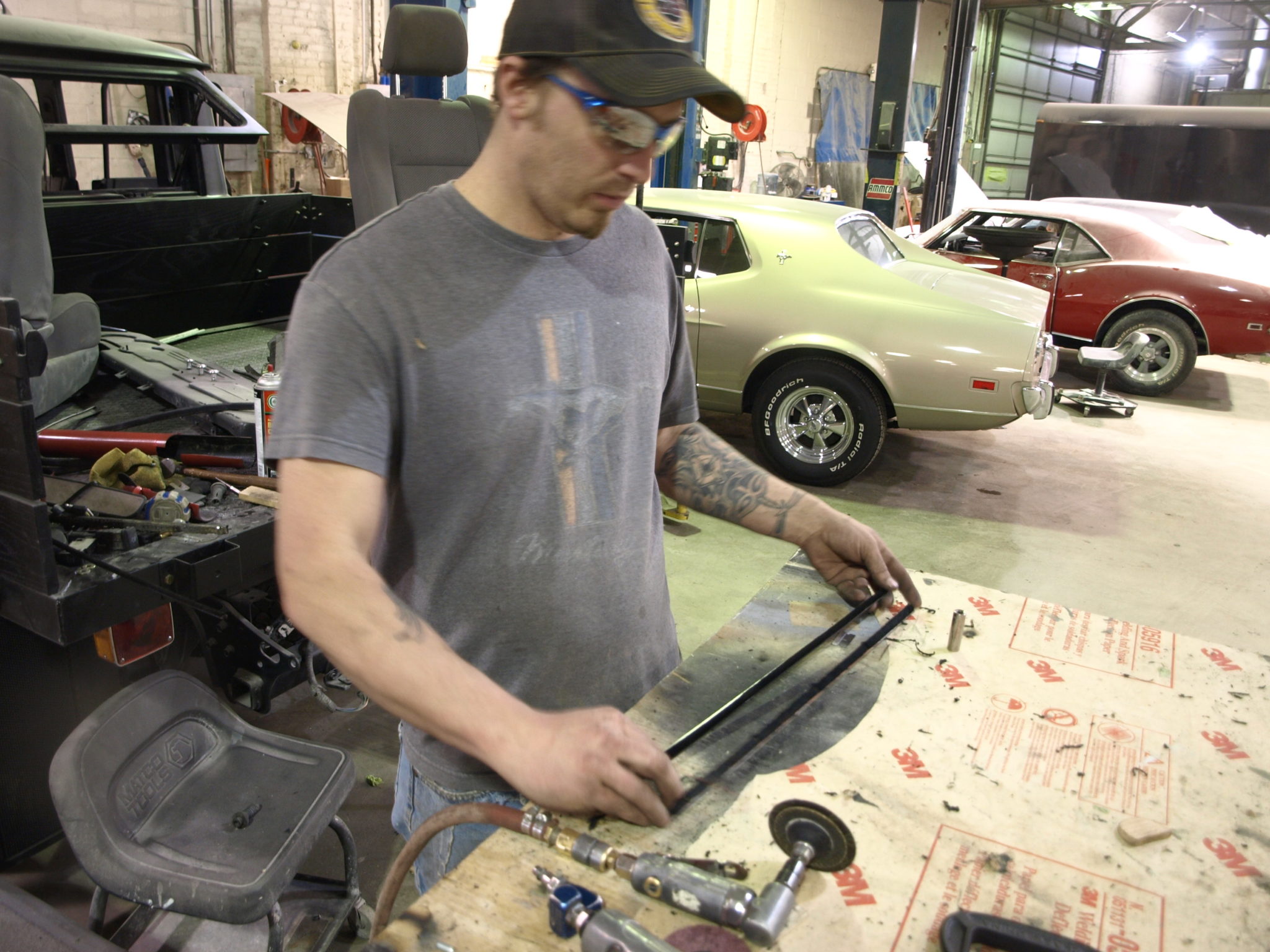 Brett continues to work on the body work for this car restoration.