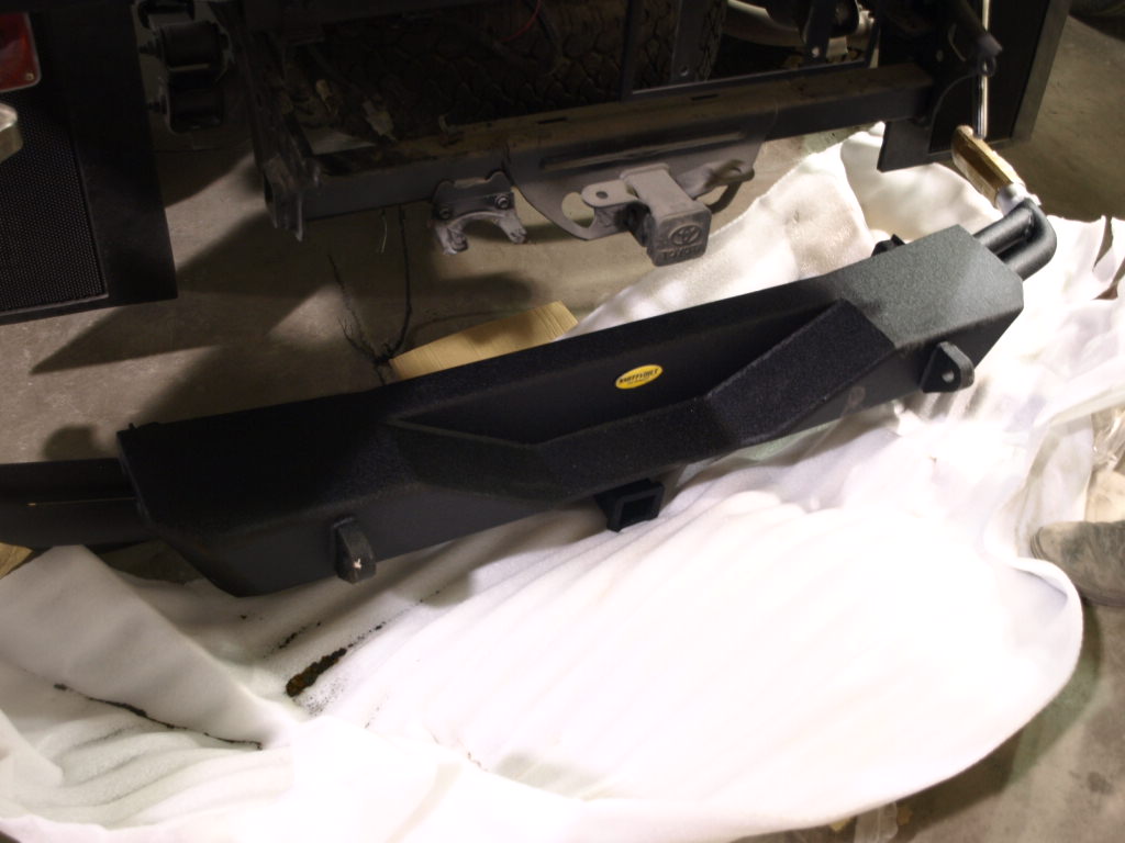 Ralph is getting the Toyota set up to install the new Smittybuilt bumpers.