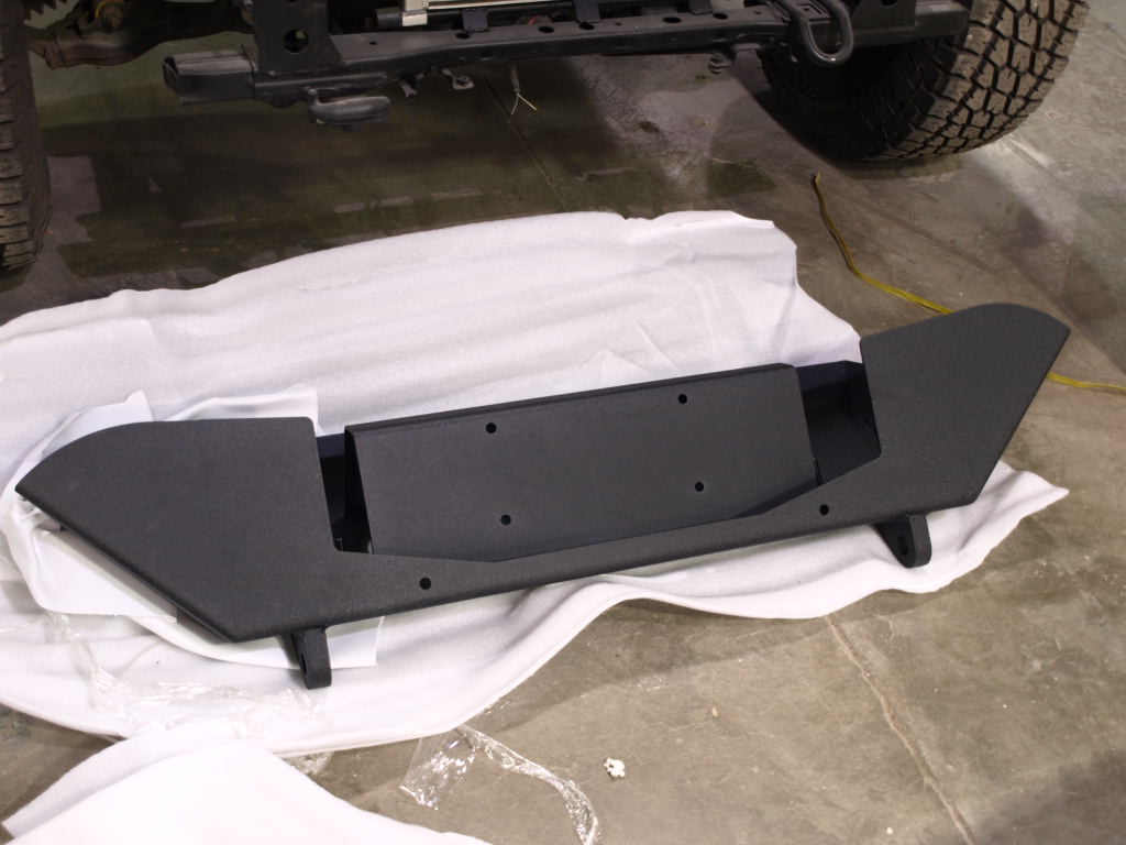 The front and rear bumpers and the nerf bars are installed.