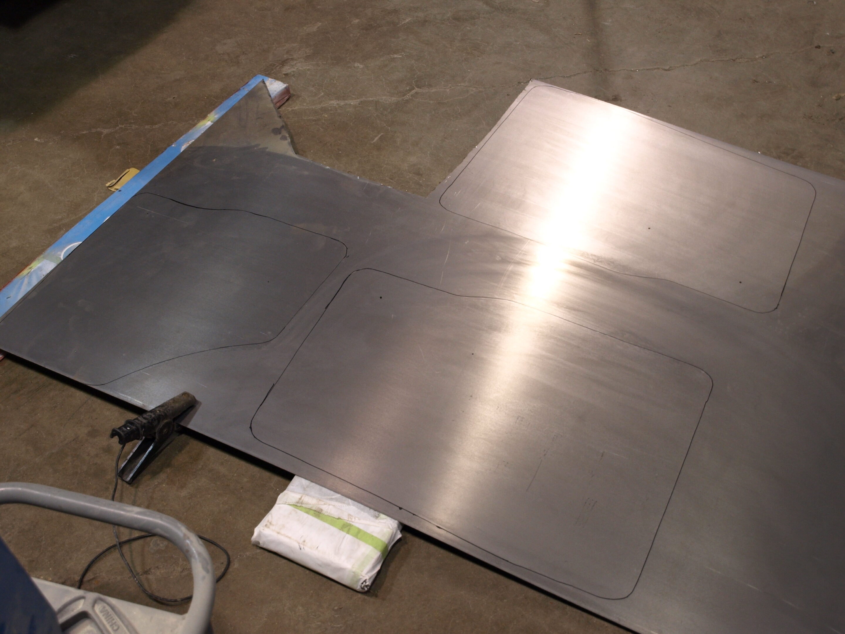 Jake is working on fabricating the metal door panels for the Landcruiser today.