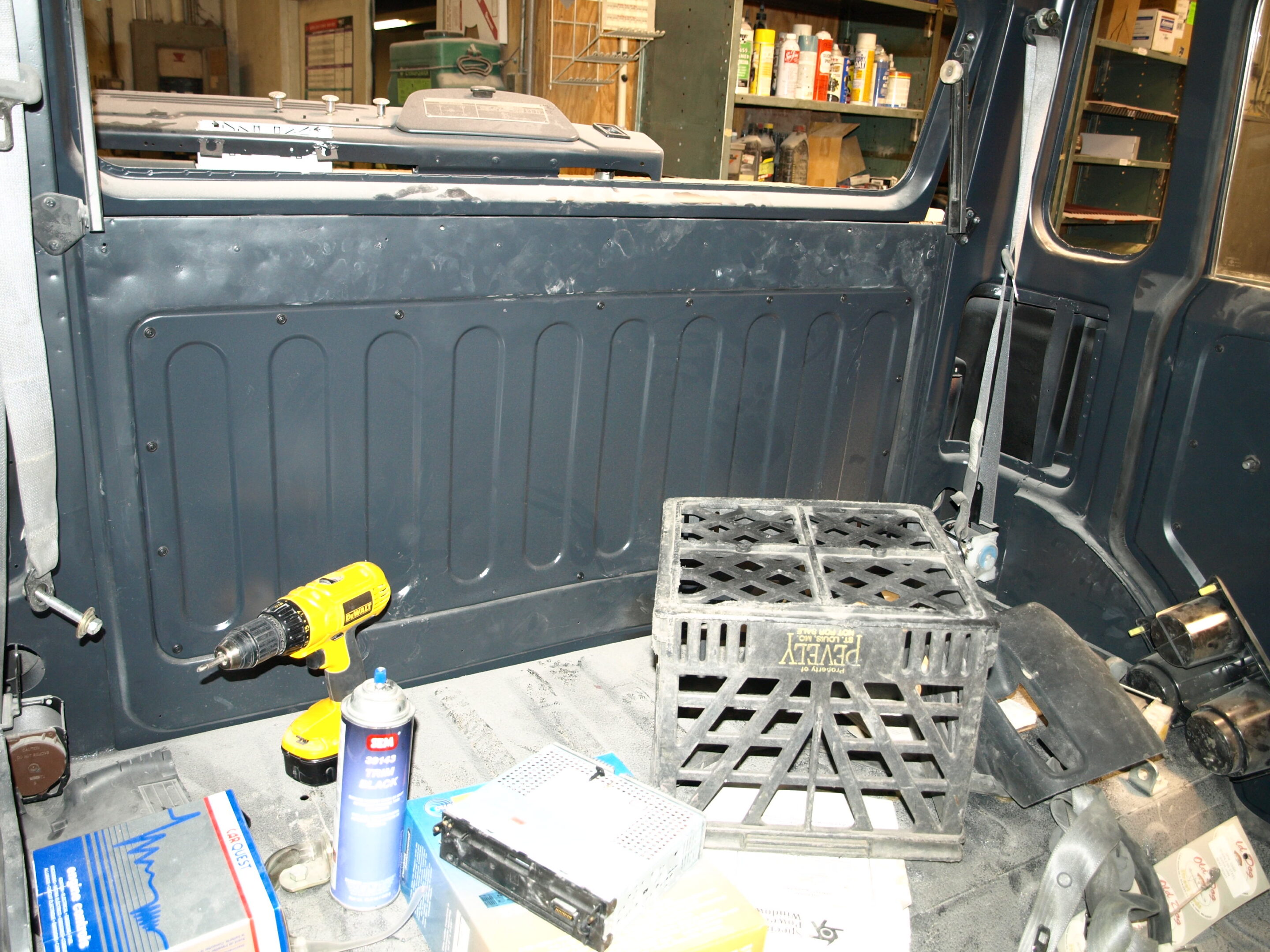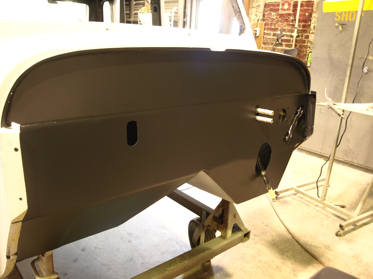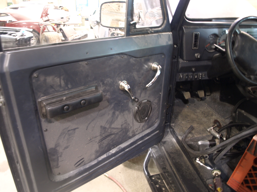 The new door panels and rear panel are painted and installed.