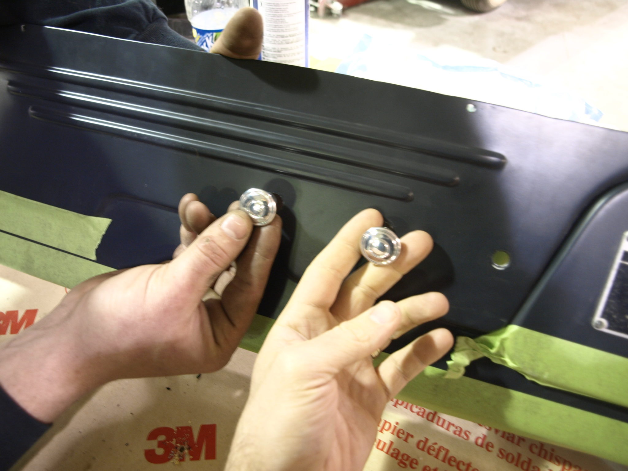 Installing the mudflaps, door handles and window cranks.
