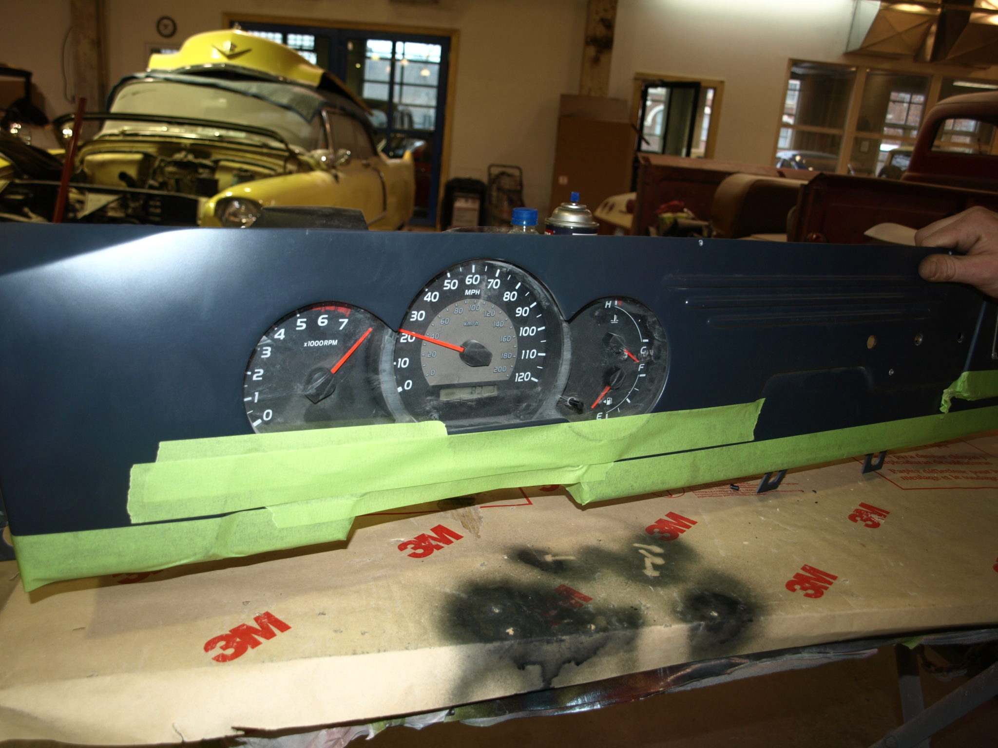 John has finished prepping the lower dash for paint.