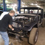 Mike is working on installing the body mounts today for the Toyota Landcruiser.