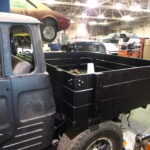 Alex is working on getting the bed sides fabricated for the Toyota and the metal part of the bed is in the paint booth for paint.