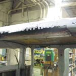 Brett has started to weld in new metal to patch where we found rust holes from blasting.