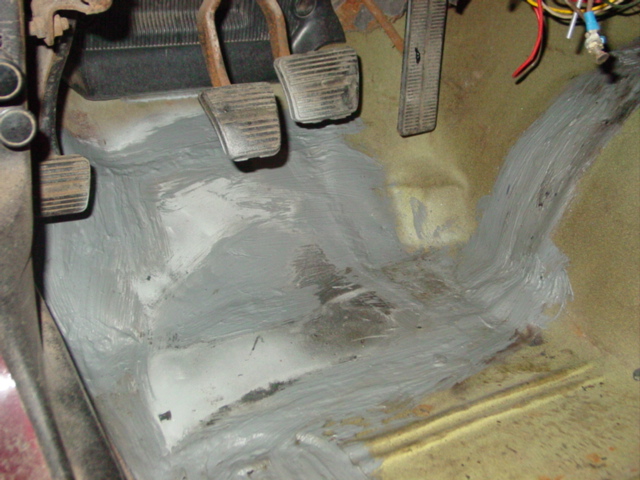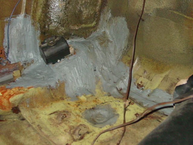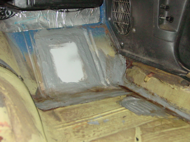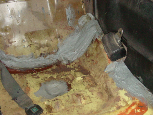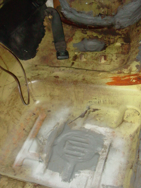 Muscle Car RestorationMuscle Car RestorationMuscle Car RestorationRalph is finishing up today the patch repairs and sealing on the floor of the 1974 Formula, where we found holes once the carpet was removed.