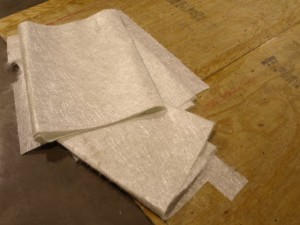 Alex has started to lay the fiberglass and resin for the first panels of the tailgate trailer.
