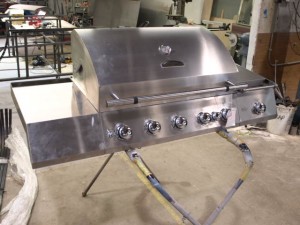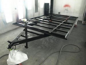 The frame work for the custom tailgate trailer is done and is in the paint booth getting sprayed chassis black. We also have the grill in that we will us in the trailer.