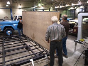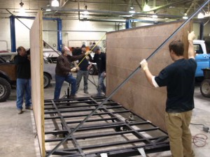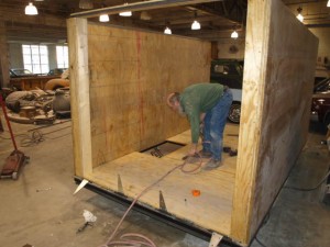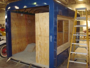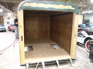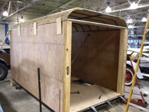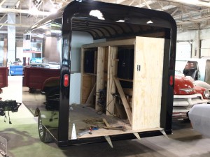 Larry is finalizing the rear wall and top installation for the custom trailer today.