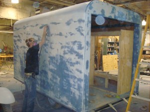 Alex is sanding down the trailer to get it prepped for it’s final coats of paint.