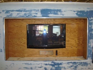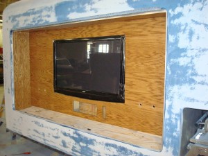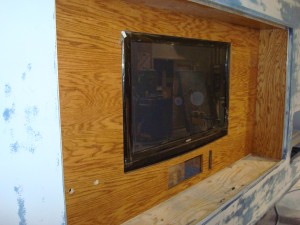 Larry and Mike are test fitting the TV and electronics for the trailer today.